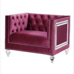Burgundy Velvet Chair Mirror Trim Accent Button Tufted Acrylic Legs Brand New In Box Firm Price $660$660Moreno Valley, CA