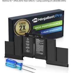 Battery Replacement A1618 A1398 for Apple MacBook Pro Retina 15"" [Mid 2015 Year ONLY] – Long Lasting [11.36V/99.5Wh]$45Riverside County, CA