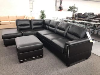 Black Faux Leather Sectional Sofa - Ottoman Sold Separate $729Moreno Valley, CA