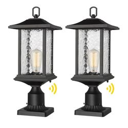 Beionxii Dusk to Dawn Outdoor Post Lights, 21inch Large Exterior Lamp Post Light Pier Mount Lantern with Base, Black Cast Aluminum w/Water Glass - A27$69Moreno Valley, CA