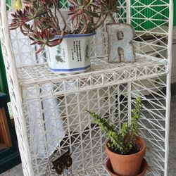 Vintage Plant Stand / Bookcase White Wicker$30Hemet, CA