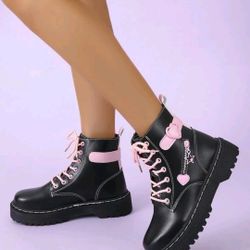 Kawaii Heart Buckle PINK Ankle Combat Boots$15Moreno Valley, CA
