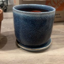Blue Glazed Plant Pot With Drain And Drain Plate $8Winchester, CA