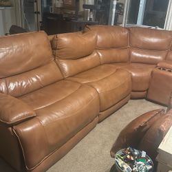 Furniture- 5 Genuine Top Grain Leather Sectional With 3 Power Recliners- Gabrine $1Hemet, CA