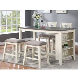 5 Piece Dining Storage Shelves 2 Chairs 2 Stools Off White & Grey Brand New In Box Firm Price $499$499Moreno Valley, CA