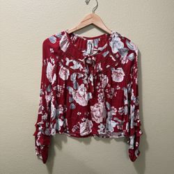 Women’s XS American Rag Cie Red Pink Gray Floral Long Sleeve Blouse$20Menifee, CA