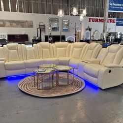 Furniture- Butternut 100% Real Top Grain Leather 5 Pc Sectional With 3 Power Recliners- Nevio $2,699Menifee, CA