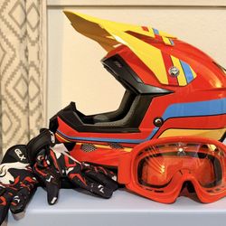 Like New Toddler Dirt Bike Helmet Set – GLX GX623 – Helmet + Goggles + Gloves – Size S$60Menifee, CA