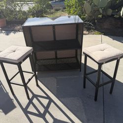 ReunionG Outdoor Bar Rattan Set 3-Piece Wicker Bar Stools & Table with 2 Storage Shelves for Lawn Pool Backyard Garden$90Escondido, CA