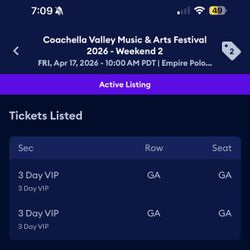 2 Coachella VIP Tickets Weekend 2 + Shuttle$2,800Murrieta, CA