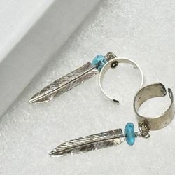 Vintage Native American Sterling Silver Turquoise Feather Dangle Ear Cuff Gift Set NIB$75Moreno Valley, CA