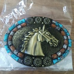 BRASS FINISH 4" INCH BUCKLE WESTERN BELT BUCKLE W/ TURQUOISE STONE HORSE$20Escondido, CA