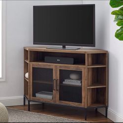 Walker Edison Modern Metal Mesh and Wood Corner Universal TV Stand with Open Shelves Cabinet Doors$150Nuevo, CA