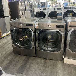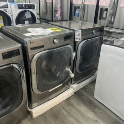 LG - Jumbo 5.2 Cu Ft Smart Front Load Washer & 9.0 Cu Ft Smart Electric Dryer Set In Graphite Steel With AI Sensing 😻$1,800Perris, CA