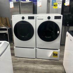 LG - 4.5 Cu Ft Smart Front Load Washer With AI Sensing & 7.4 Cu Ft Smart Gas Dryer Set With Sidekick Pedestal Washer 😻$2,000Perris, CA