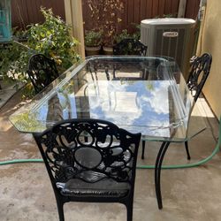Aluminum Table/ 4 Chairs/ Etched Tempered Glass Top$425Menifee, CA