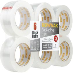 ROWNAK Clear Packing Tape 6 Rolls - Heavy Duty Packaging Tape 2.7mil Thick, 2.0 in. Wide x 110 Yards - Strong Adhesive, Silent, Reliable Package Tape $10City Of Industry, CA