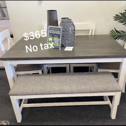 ✅️✅️(6 pc white & grey finish wood dining table set grey padded seat chairs and bench✅️✅️✅️$318Pico Rivera, CA