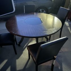 55” Round Dining Table with Lazy Susan And 4 Leather Chair$50Santa Fe Springs, CA