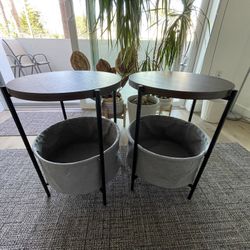 Pair of Round Side Tables with Lower Shelf and Fabric Baskets$65Costa Mesa, CA