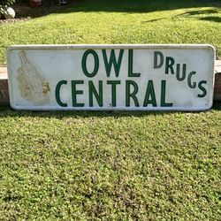 Antique Metal Sign — Owl Drugs Central Store Sign — Advertising — Length 4ft.$400Whittier, CA