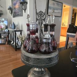 Antique Roger's &Bros. Ruby Red Castor Condiment Cruet 6 Bottle Set.$150Lakewood, CA