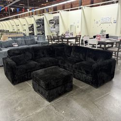 $0 Down! Furry Corduroy Black Sectional With Ottoman$520Whittier, CA