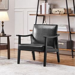PU Leather Accent Chair, Mid-Century Modern Armchair with Solid Wood Legs, Reading Leisure Chair with High Back for Living Room Bedroom Waiting Room, $69Norwalk, CA