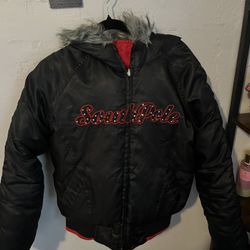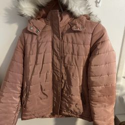 Size Small Salmon Color Puffy Jacket Pre Owned But In Great Condition Faux Fur Hood $15Garden Grove, CA