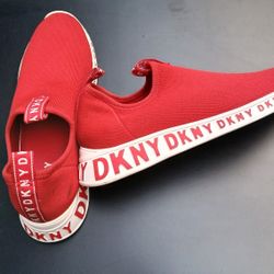 Like New DKNY Melissa Women`s Red Neoprene Zip Logo Fashion Slip On Sneakers Sz 9$20Los Angeles, CA