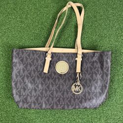 Michael Kors Signature Brown MK Logo Tote Bag Beige Leather Straps SEE$50Anaheim, CA