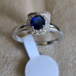 Solid Silver Ring - Blue Topaz Rock CZ With Hallo Setting Size 6$50Los Angeles, CA