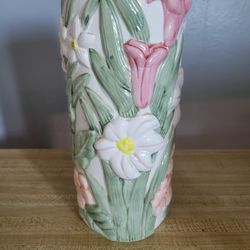 Cylindrical Ceramic Flower Vase – Colorful 3D Floral Design$5Baldwin Hills, CA