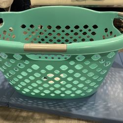 Sturdy teal laundry basket with handles.$8Arcadia, CA