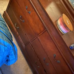 Dark wood (NOT COMPRESSED)dresser with a mirror, 6 Drawer Dresser And 2X Two Drawer Night Stand$350Highland Park, CA