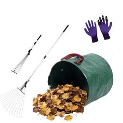 Garden Rake for Leaves with Telescoping Long Handle 33-63" & Adjustable Head 8-22" - Heavy Duty Metal Rake Kit with 16 Gallon Leaf Bag & Gloves, for Y$10Huntington Beach, CA
