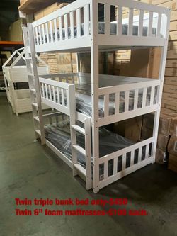 Triple twin bunk bed. Available in white & espresso. Assembly required. Assembly not included. Tax included. Free local delivery. -$450. Twin mattr$450Fullerton, CA