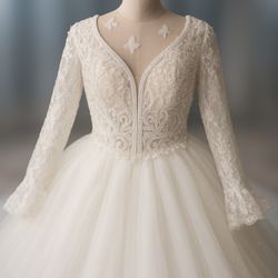 White Long-Sleeve Lace Ball Gown Wedding Dress $540Stockton, CA