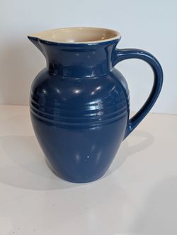 Le Creuset Blue Stoneware Pitcher 9 Inch Ceramic Water Jug Kitchen Serveware$30Stockton, CA