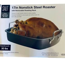 SALT 17" NONSTICK STEEL ROASTER UP TO 30 LBS U RACK NEW IN BOX$80Modesto, CA