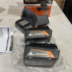 Ridgid 18V Two 4 Ah MAX Output Batteries With Charger Model AC(contact info removed)SB$180Lodi, CA