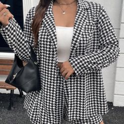 Plus Size Houndstooth Lapel Jacket & Shorts 2pcs Suit Set$25Stockton, CA