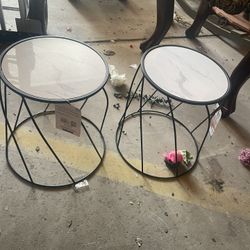 Brand New, Beautiful pair of black metal and faux marble-top side tables or accent tables. $30Modesto, CA