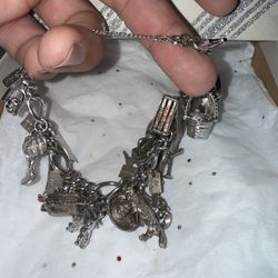 Vintage STERLING SILVER 925 AMERICAN MONUMENTS PARKS w/37 CHARM BRACELET 105gm ANTIQUE$1Modesto, CA