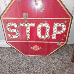 Vintage porcelain stop sign with the glass cat Eye marble reflectors CSSA$700Lodi, CA