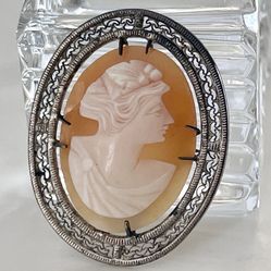 Antique Carved Shell Cameo Woman Portrait Filigree Sterling Silver Brooch Pin$50Modesto, CA