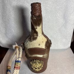 Vintage Leather Wrapped Brandy Bottle Cowhide Cover Metal Crest No Stopper$15Lathrop, CA