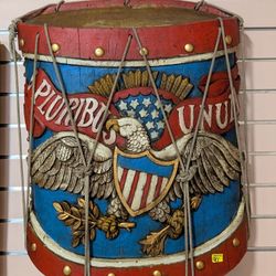 Vintage Patriotic Eagle Drum Decorative Wood Carved Americana Wall Display Sign