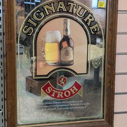 Vintage Signature Stroh Beer Framed Bar Mirror Advertising Display Decor Wall