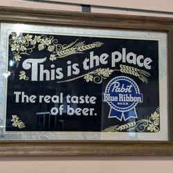 Vintage Pabst Blue Ribbon Beer Framed Bar Mirror Advertising Wall Decor Sign